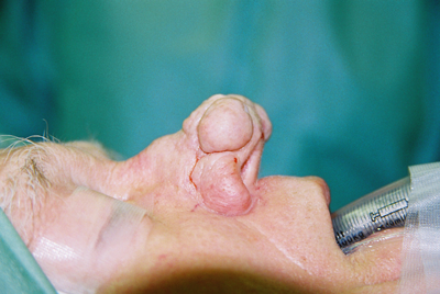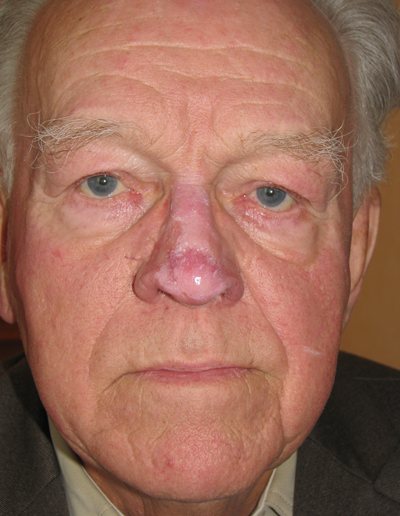 Rhinophyma is an aesthetic embarrassment to many people. It is the result of sebaceous gland hyperplasia within the skin over the alar cartilages of the nose. It has a familial tendency and in addition to being unsightly it can commonly cause problems with infection and pustular greasy secretions.