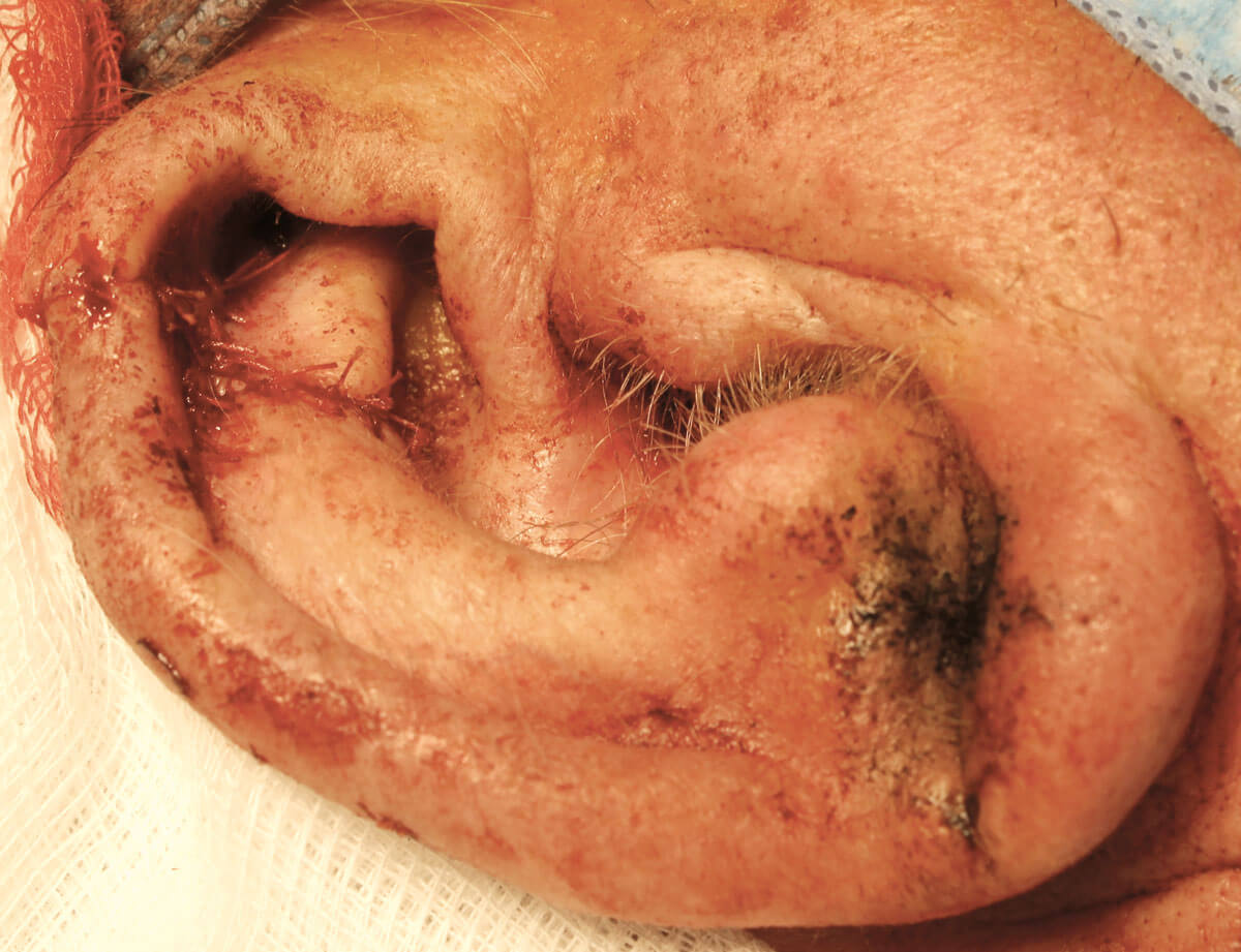 Skin malignancies developing on the auricle continue to be regarded as high-risk lesions due to their propensity to recur and for lymphatic spread. Greater peripheral and deep excision margins are therefore required to ensure high rates of complete removal [1,2].