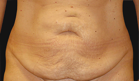 Figure 7 (pre and postoperative): A body lift involves the removal of tissue all the way around the body. It is truly the only way to address the excess tissue around the flanks and buttocks following weight loss surgery. Although a more extensive procedure for patients presenting in this manner, a body lift is the best rejuvenating technique.
