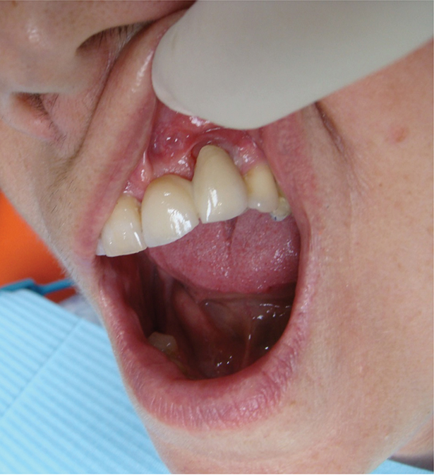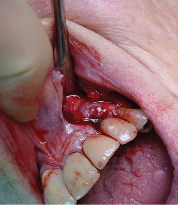 Above: A case of peri-implantitis requiring debridement and bone grafting.