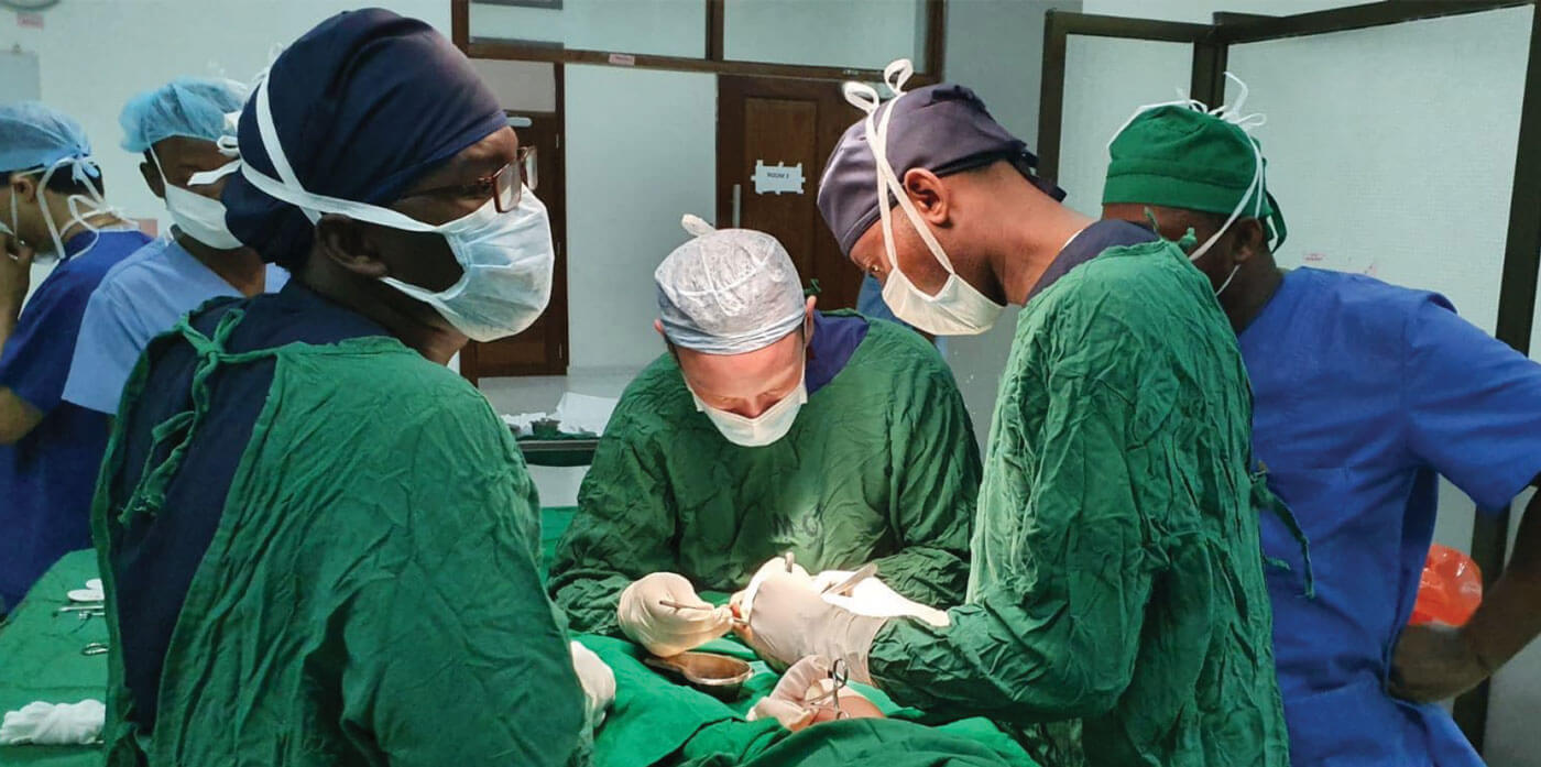 Edmund Fitzgerald O’Connor (centre) training surgeons at Tumbi Hopsital,