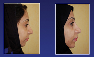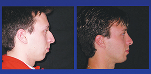 Figure 3: Pre-post surgical profile correction: chin extending implant and reduction rhinoplasty.