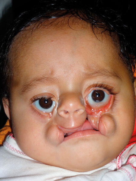 IBRAHIM. By funding research, one question that CLEFT is looking at trying to answer is why there seem to be so many more craniofacial clefts in Bangladesh than in other parts of the world. Ibrahim presented with a bilateral Tessier 4 cleft.