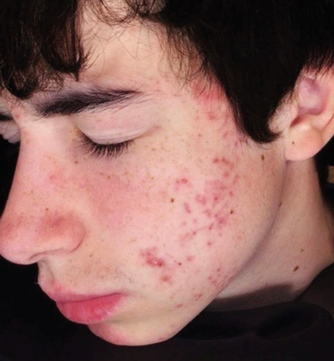 Figure 1: Papulo pustular acne with dyschromia.