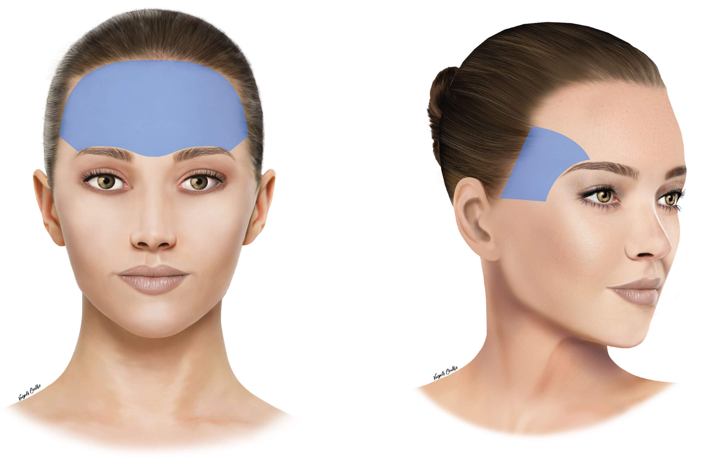 In general, there is no ideal shape nevertheless a youthful and balanced upper facial contouring shows a gentle convexity of the forehead with a smooth transition to the temples, extending to the lateral midface.