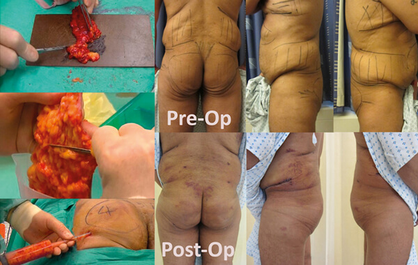 The recognition by Mendietta and others of variations in the shape of waist and thighs meant that an ‘A’, ‘V’ shaped midframe could be reshaped into classical female curves [5]. It is very unlikely that many UK trained surgeons have actually ever performed the procedure as described by Mendietta. The initial aggressive lipo-harvest will have risk of oil embolism in its own right, which may be asymptomatic or cause a mild confused state in the first few days postoperatively [6]. Large volume fat is harvested after tumescence and using a wide bore cannula, sucking fat under low pressure into a filter / separation system and then reinjected, almost neat, into the buttock. The plane of injection is important. Del Vecchio et al. have shown that fat injected directly into the gluteus maximus under pressure dissipates into the sub-gluteal space, possibly damaging veins during the expansion and putting the patient at risk from particulate embolism, mainlining fat to the heart and lungs, leading to fatal cardiac arrest, usually during the procedure.