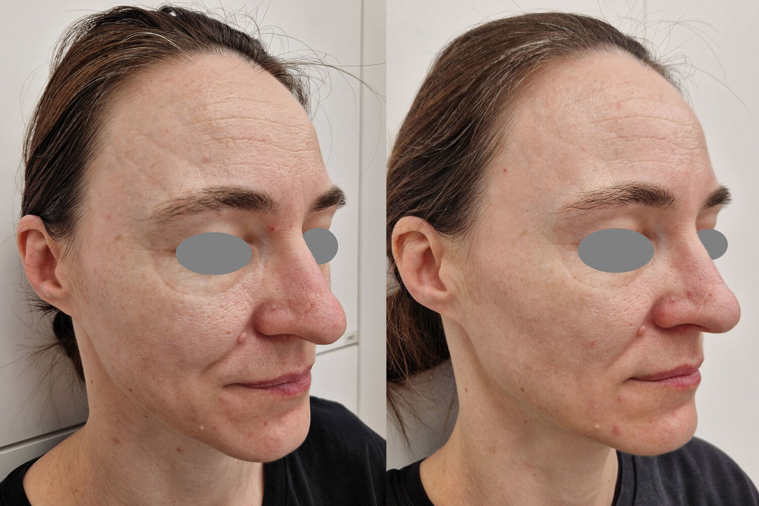 Patient before treatment (left) and one month after the third session (right).