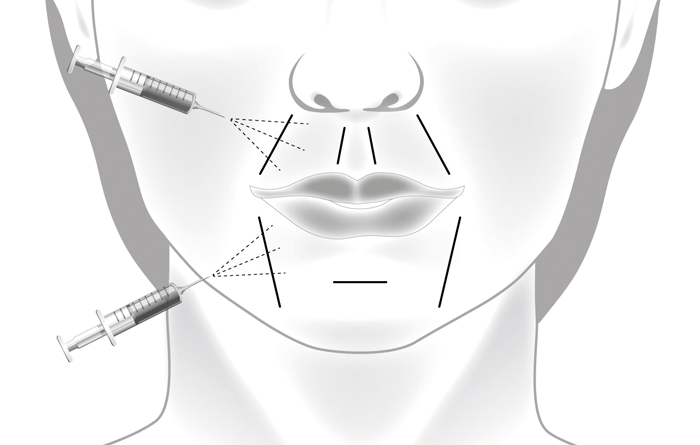 Figure 2: Illustration demonstrating the placement of needles to lips.