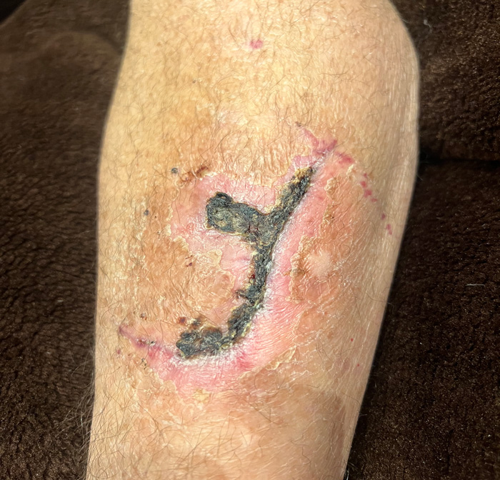 Figure 5: The wound at 31 days with significant shrinking of area and manageable dry crusting.