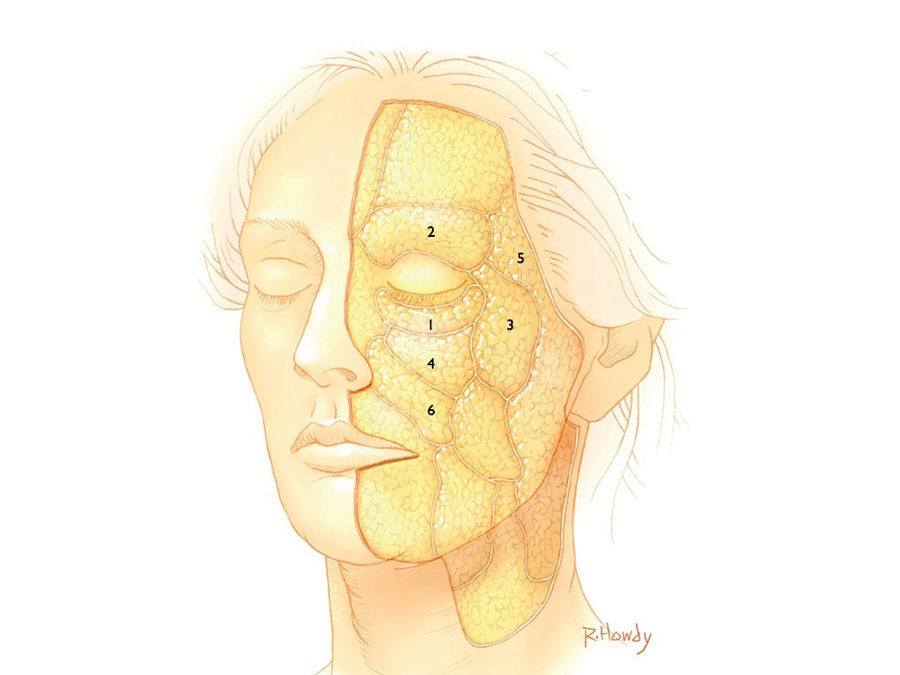 - Lateral malar fat compartment - to promote superolateral lift and improve surface tension of the mid-face.