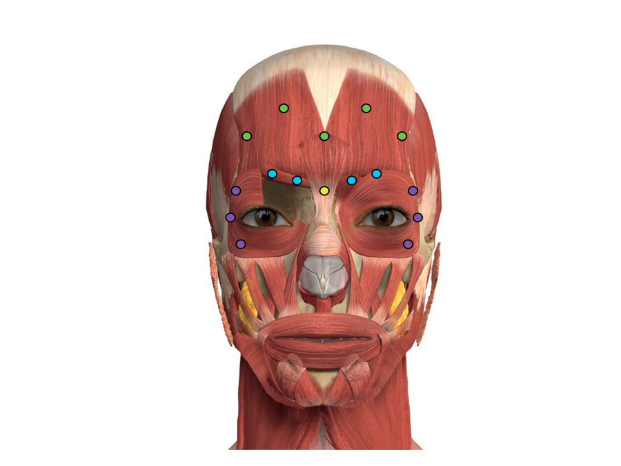 - Brow lift complex - can be divided into the following sequence of injections to give structural support and lift to the eyebrow (Figure 10):