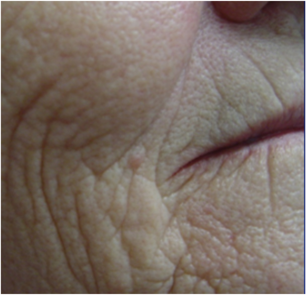 The aesthetic applications of ablative lasers have expanded significantly. In particular photo-ageing leading to the development of lines and wrinkles particularly around the eyes and mouth can be treated. Skin texture can be improved significantly and lentigines removed (Figure 3).