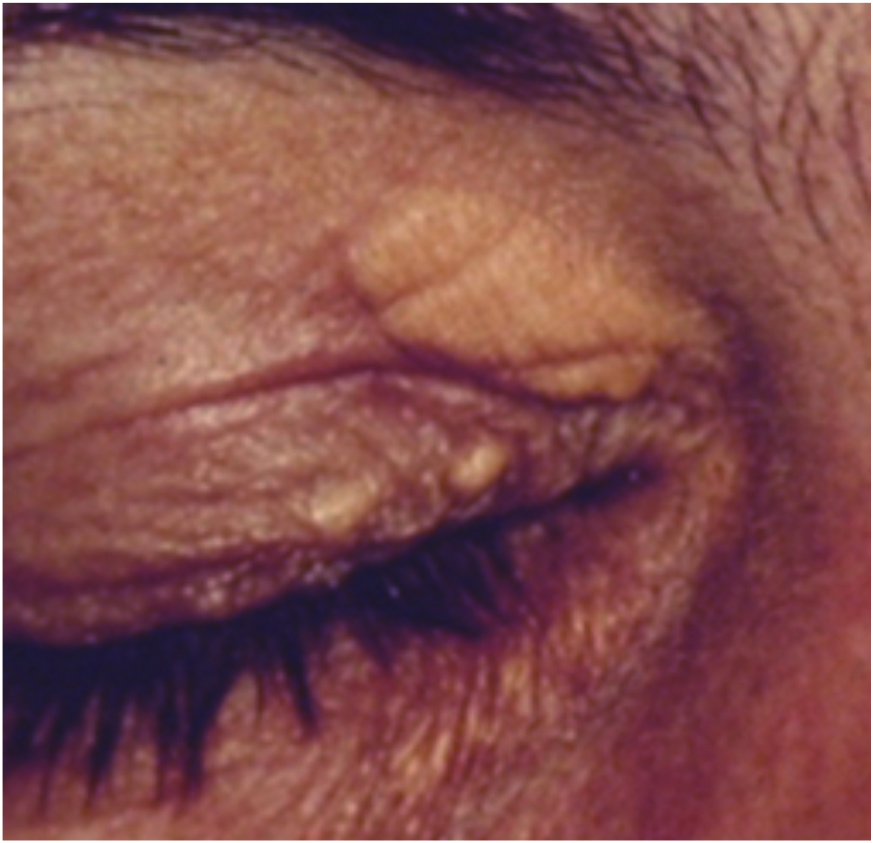 The CO² laser provides a dry surgical field which allows the sculpting of the hypertrophic areas to be very effective, giving a very satisfactory cosmetic result (Figure 5). Neurofibromata can be ablated quickly and effectively allowing large numbers of nodules to be removed at one time. Xanthelasma is another condition which responds well to the precision of laser ablation (Figure 6).