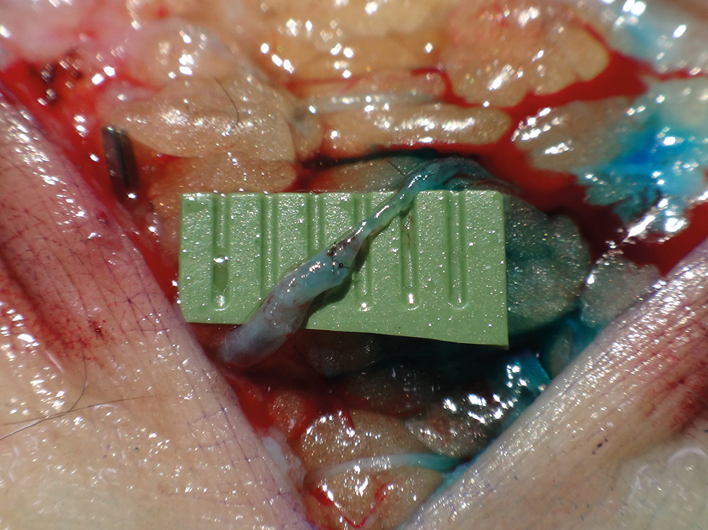 Using this information, a skin-adipose-LN flap, with an approximately 8x4cm skin island, is harvested above the inguinal region and its vascular pedicle is dissected gently up to the femoral vessels.