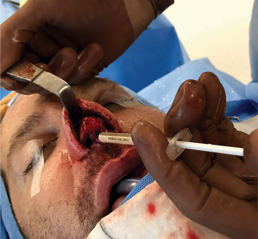 Figure 1: Diced cartilage layered over the tip using a syringe to provide smooth contour.