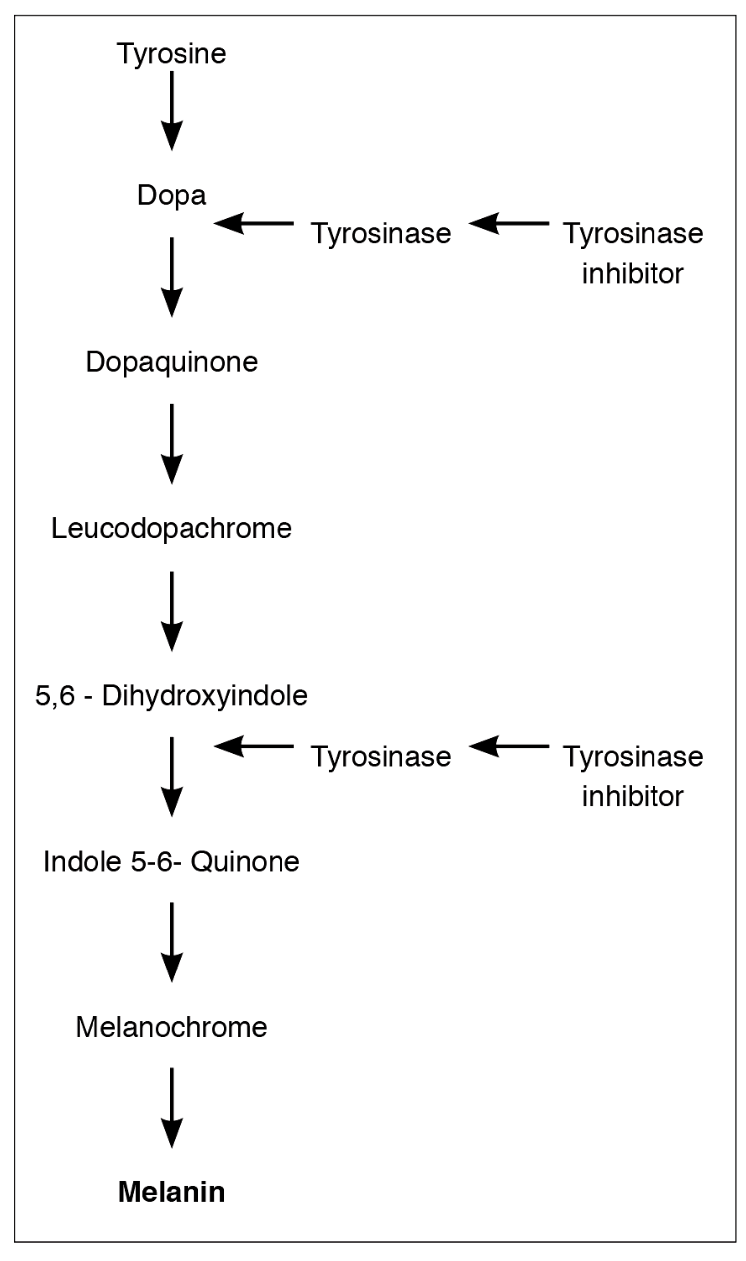 Figure 1: Melanin production. Crucial role of tyrosinase inhibitors.