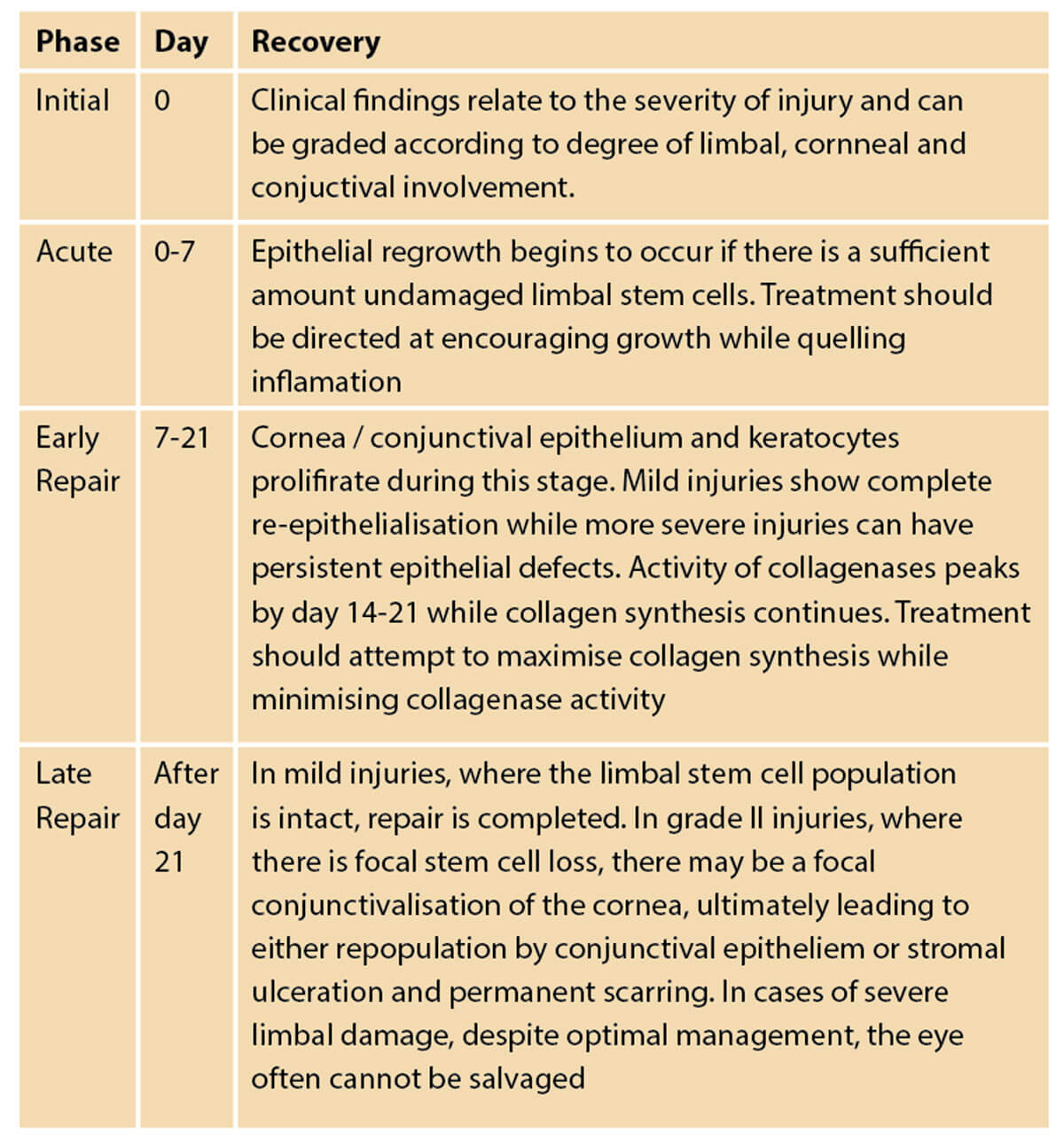 Figure 5: Stages of ocular recovery following chemical injury.