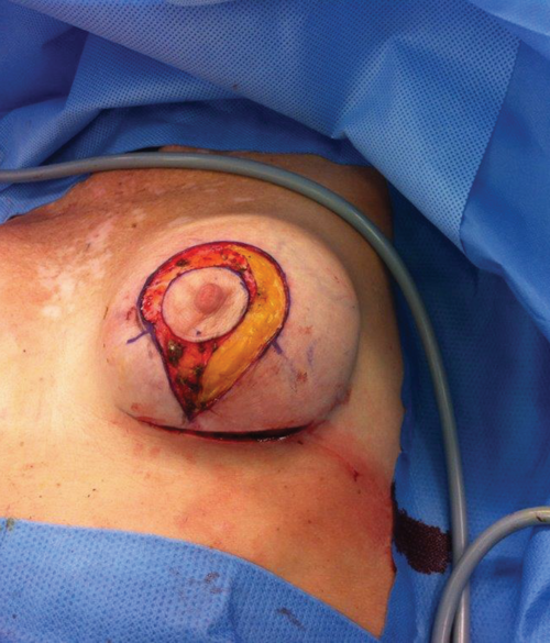 The Wise-pattern skin excision is widely used to correct ptotic breasts, or in breast implant revision surgery when abundant skin excess has to be corrected [1]. The goal of the surgeon is to obtain an exact fitting skin envelope around the underlying tissue and implant.