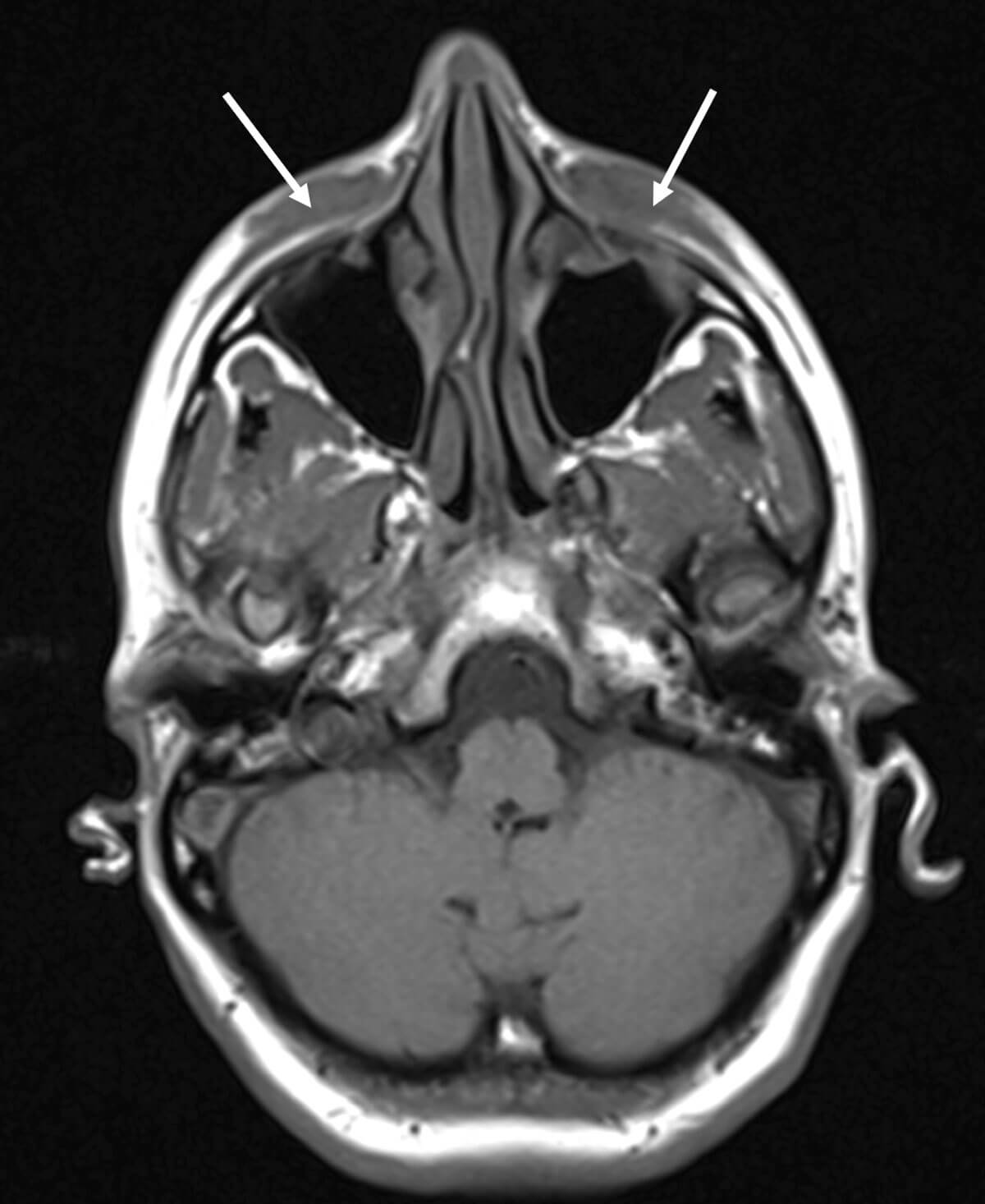 Figure 3: MRI orbit and soft tissue face - diffuse soft tissue thickening which affected