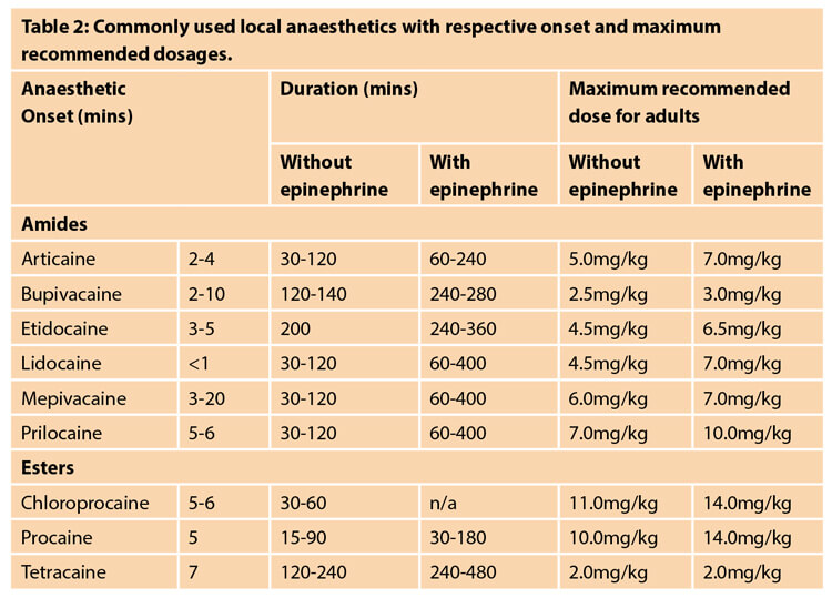 It is important to be aware of the maximum dosages of local anaesthetics as they are supplied in different concentrations and volumes.