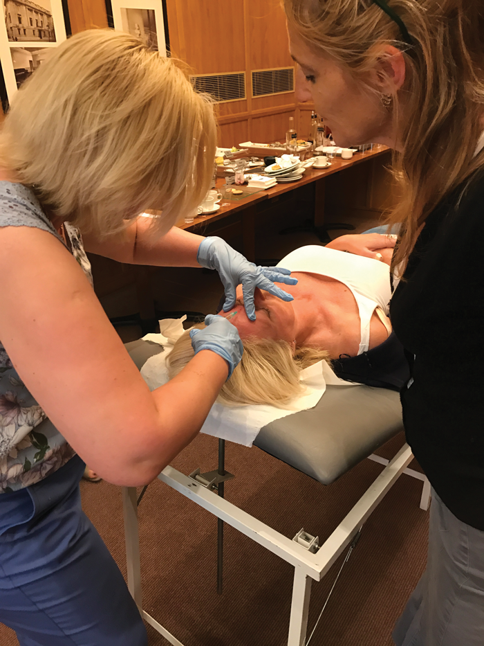 When performing ‘Mesobotox’, the technique of injection of the botulinum toxin corresponds to the criteria of the mesotherapy injection. Intradermic injections must be achieved in the medium derma in order to achieve a dermic papule so that a spreading can be done. If an injection is too superficial, the papule becomes veside, the product remains at the level of the superficial dermis and the underlying effect will be nearly absent [4,5].