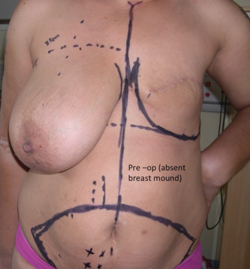 Figure 1: Pre-op (before reconstruction). Patient had left mastectomy.