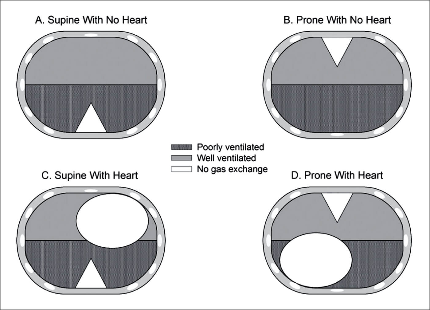 This explains why the prone position is favoured in patients with acute respiratory distress.